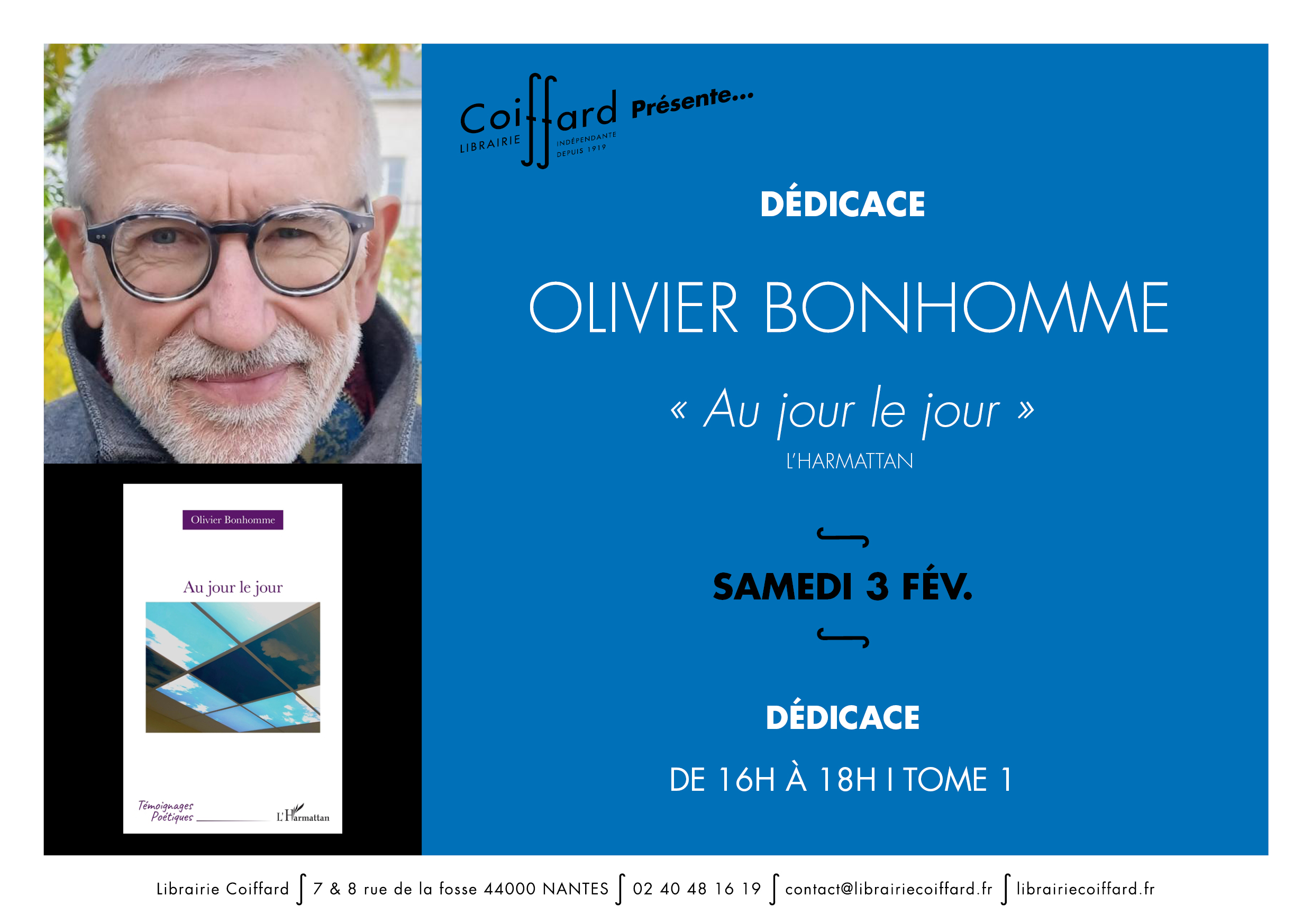 Olivier Bonhomme, auteur d'"Au jour le jour" sera en dédicace à la librairie Coiffard (Nantes) le samedi 3 février