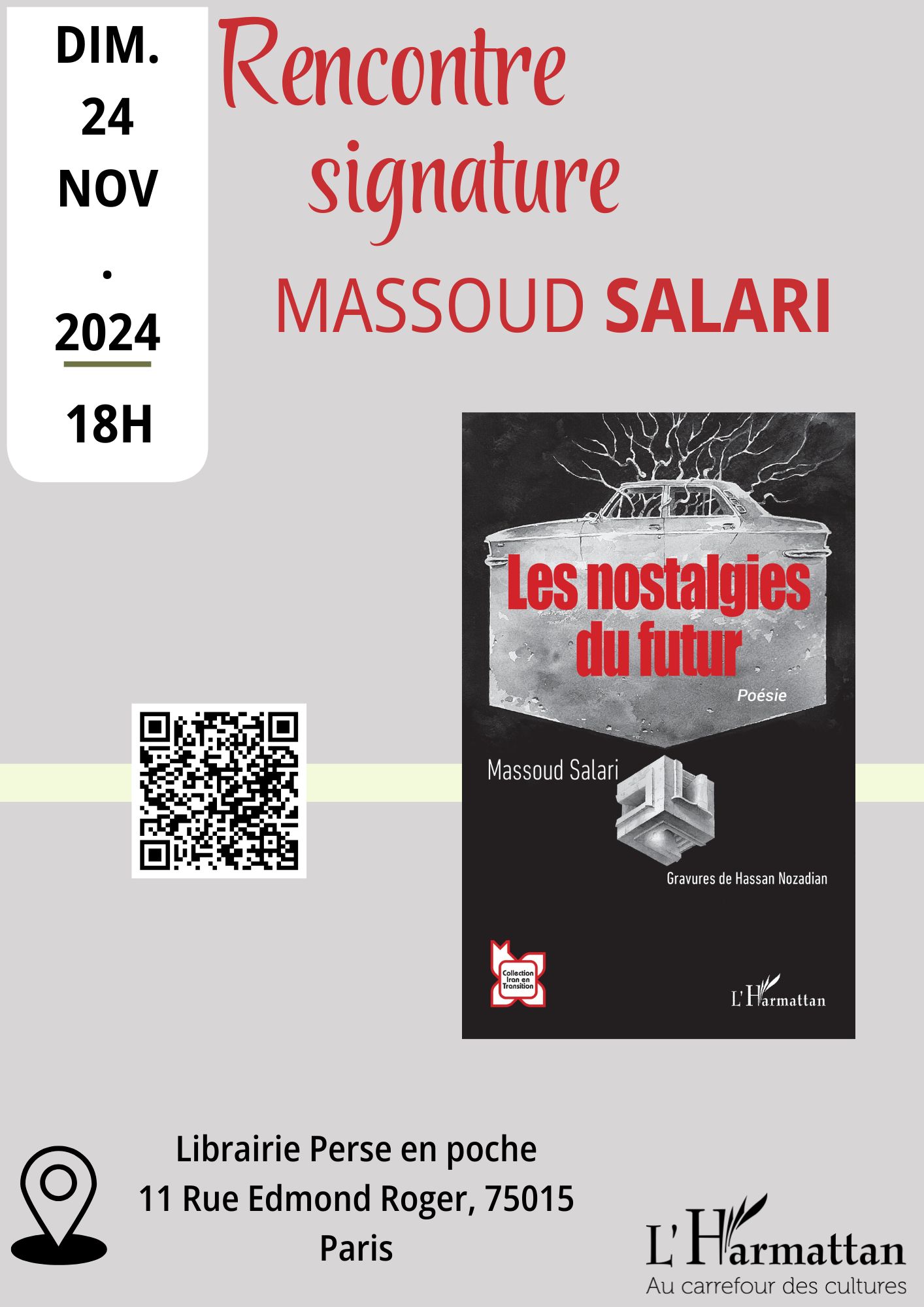 Rencontre avec Massoud Salari à la librairie Perse en poche le 24 novembre 2024.
