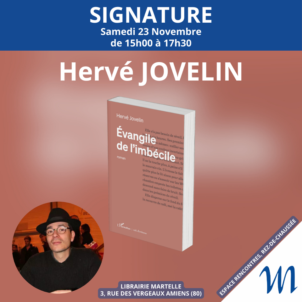 Venez nombreux rencontrer Hervé Jovelin le 23 novembre à la librairie Martelle, de 15 h à 17 h 30, pour découvrir un Évangile sensible, iconoclaste et cathartique.