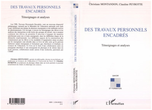 Les TPE, Travaux Personnels Encadrés, sont un nouveau dispositif pédagogique, instauré par le Ministère de l'éducation nationale sous Jack Lang, mobilisant une équipe de plusieurs enseignants et des méthodes actives de questionnement. A travers les témoignages des élèves et les analyses des interactions et des écrits des groupes de travail, cet ouvrage vise à montrer comment des élèves de première S peuvent s'engager dans les différentes étapes de la démarche expérimentale, de manière satisfaisante pour eux et leurs enseignants.