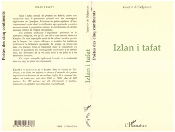 Izlan i tafat, recueil de poèmes en kabyle, puise son inspiration dans le patrimoine culturel oral des montagnes algériennes du Djurdjura. Ces poèmes traduisent l'inquiétude spirituelle et le sentiment religieux. Les valeurs éthiques et sociales, les traditions millénaires, la littérature spontanée du groupe se retrouvent dans ces poèmes. Ceux-ci traduisent aussi la conception du monde, le quotidien des montagnards confrontés à un terrain rude, aux difficultés de la vie, mais aussi à ses joies e...