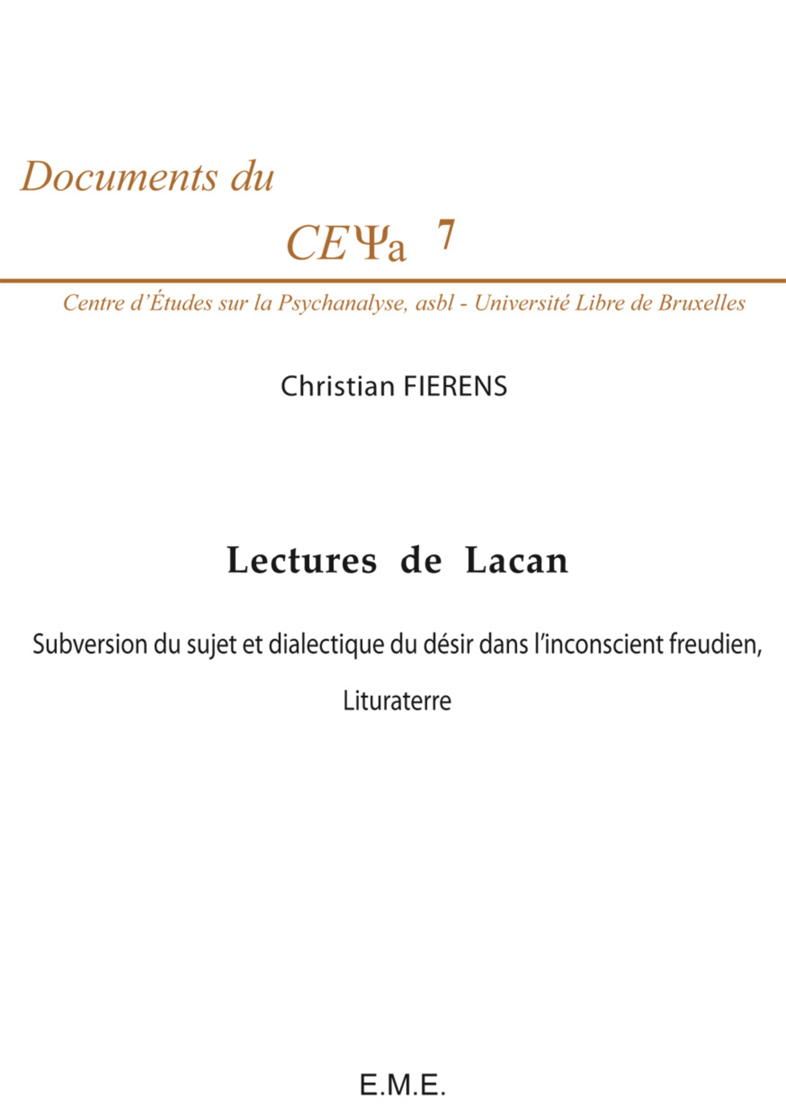 “Il faut prendre le désir à la lettre” (Lacan, La direction de la cure, p. 620) / Le désir : “Subversion du sujet” / La lettre : “Lituraterre” / Le présent volume est la réimpression de la transcription de deux cours déjà publiés dans les cahiers du Cepsy.