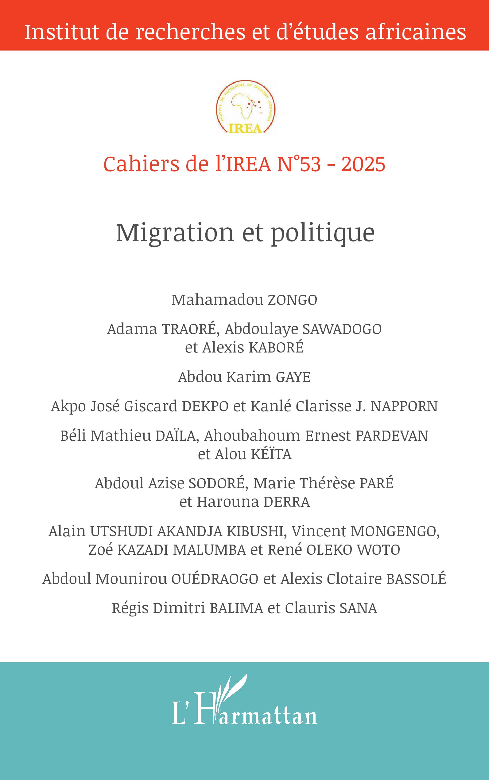 Au sommaire de ce nouveau numéro : D’une génération à l’autre. Les Burkinabè dans l’agriculture de plantation en Côte d’Ivoire de Mahamadou ZONGO - L’utilisation du modèle intelligent dans la prédiction du solde migratoire et le nombre des migrants internationaux en Afrique de l’Ouest de Adama TRAORÉ, Abdoulaye SAWADOGO et Alexis KABORÉ - Atténuation des risques de violences basées sur le genre associés à l’autonomisation économique des femmes en Mauritanie : Quelle théorie économique appliquée ...