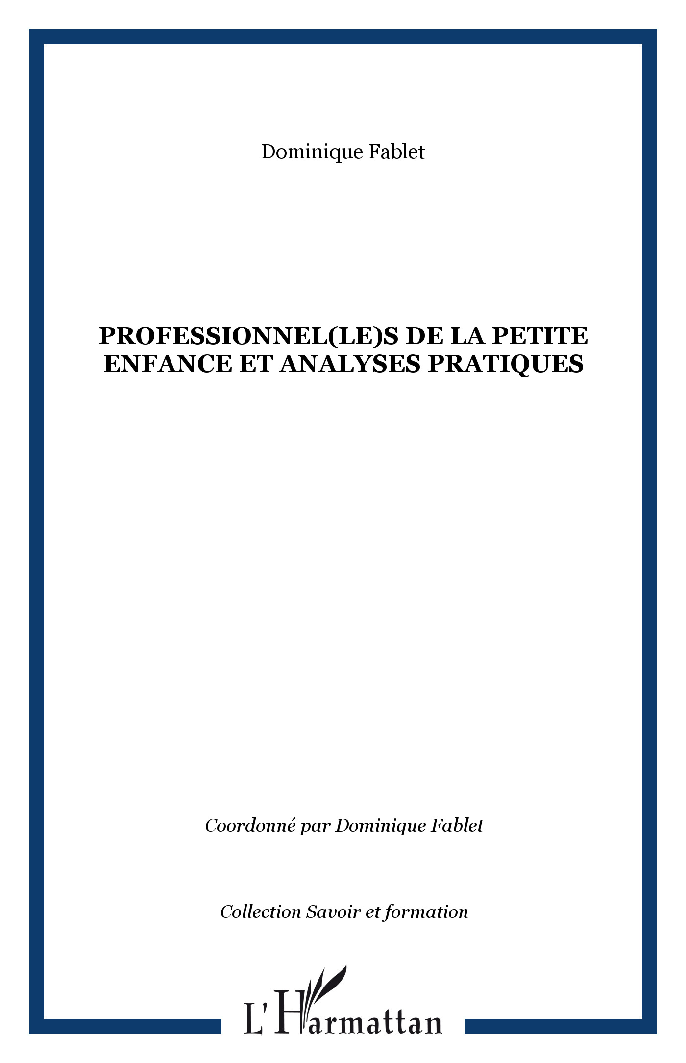 Ce neuvième ouvrage collectif d'une série destinée à mieux faire connaître dispositifs et pratiques d'analyse des pratiques professionnelles se centre sur le champ des professionnels de la petite enfance, dans lequel exercent principalement des femmes. Un certain nombre de praticiens ont été invités à formaliser leur expérience d'analyse des pratiques professionnelles.