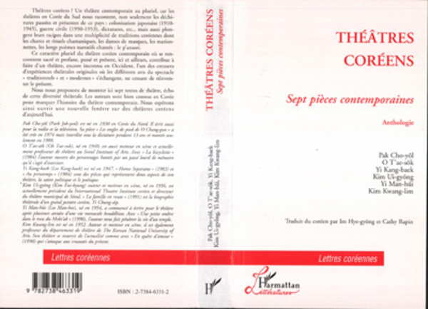 Théâtres coréens ? Un théâtre contemporain au pluriel, car les théâtres en Corée du Sud nous racontent, non seulement les déchirures passées et présentes dans ce pays mais aussi plongent leurs racines dans une multiplicité de traditions coréennes dont les chants et rituels chamaniques, les danses de masques, les marionnettes, les longs poèmes narratifs chantés: le p'ansori. Ce caractère pluriel du théâtre coréen contemporain où se rencontrent profane et sacré, passé et présent, ici et ailleurs, contribue à faire d'un théâtre, encore inconnu en Occident, l'un des creusets d'expériences théâtrales originales où les différents arts du spectacle traditionnels et modernes s'échangent.