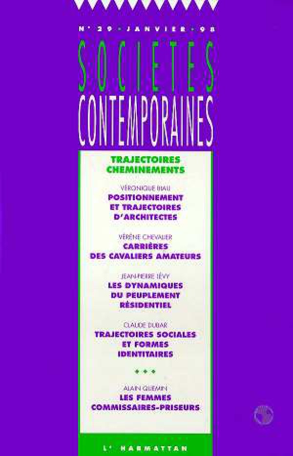 Positionnement et trajectoires d'architectes (Véronique Biau), Carrières des cavaliers amateurs (Vérène Chevalier), Les dynamiques du peuplement résidentiel (Jean-Pierre Lévv), Trajectoires sociales et formes identitaires (Claude Dubar), Les femmes commissaires-Priseurs (Alain Quemin).